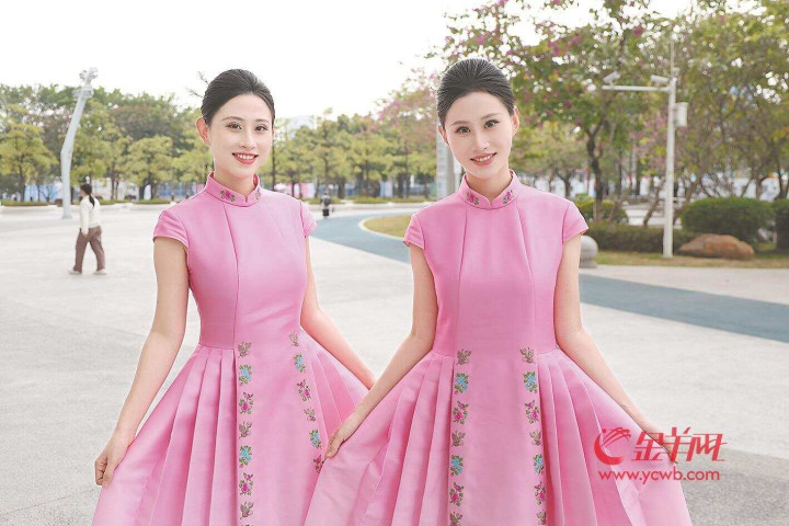 “颁奖仪式现在开始……”在全国第十二届残疾人运动会暨第九届特殊奥林匹克运动会(以下简称“残特奥会”),每当激昂的音乐响起,首先进入观众视野的是身着一袭粉色马面裙的颁奖礼仪志愿者。在她们的引领下,冠亚季军依次亮相,嘉宾从她们手中接过奖牌、吉祥物,庄重地颁发给选手。这抹靓丽身影活跃在粤港澳大湾区各个比赛场地,其中广州赛区有一对双胞胎姐妹王佳莹、王佳鑫,全程在场服务赛事,见证数个荣耀时刻。